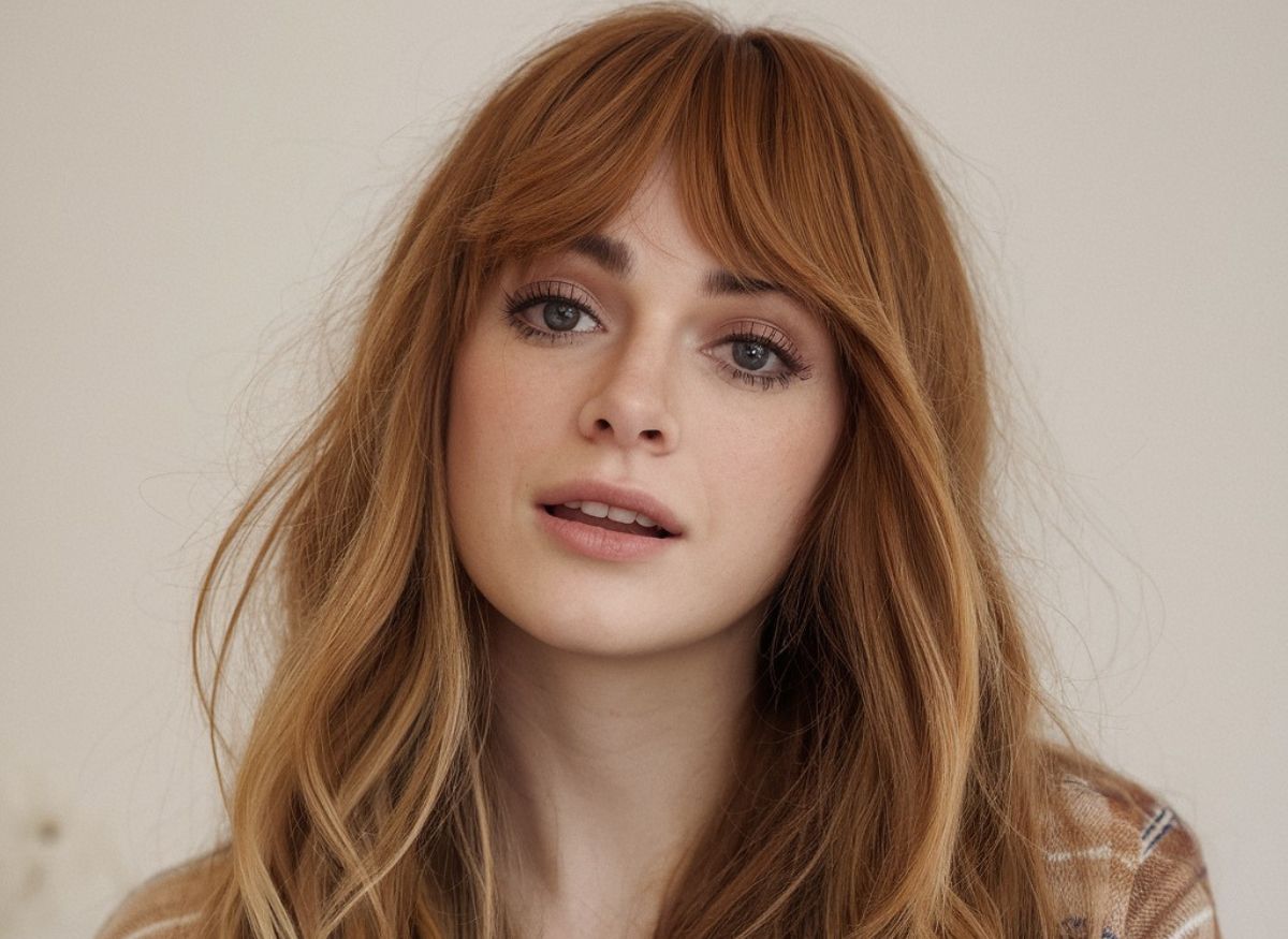 The combination of honey-brown hair with wispy bangs is both warm and youthful. Wavy layers add texture and movement, making this style soft and romantic. The honey tones enhance the natural glow of your skin, creating a sweet and effortless vibe.