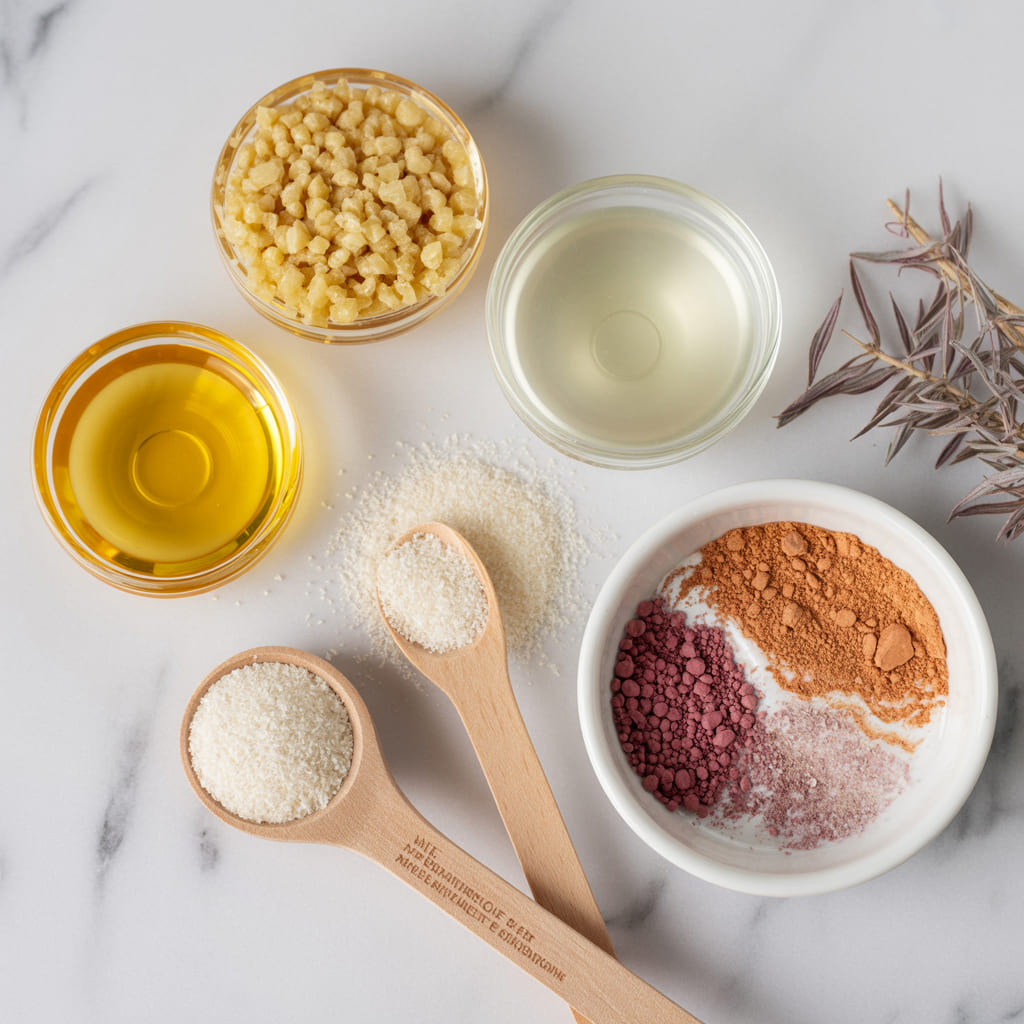 - Pigment blend of choice (iron oxides, mica, or beetroot powder)