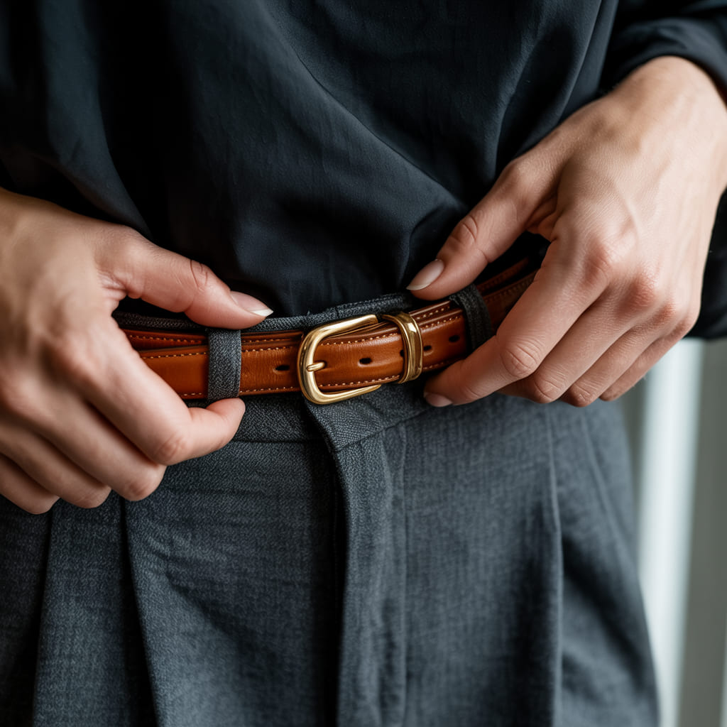 It wasn’t a belt with a statement buckle or decorative stitching. It wasn’t chosen for style at all. It was the simplest accessory I own: a soft leather belt in a shade close to my natural wardrobe palette. Yet without it, everything felt slightly unanchored.